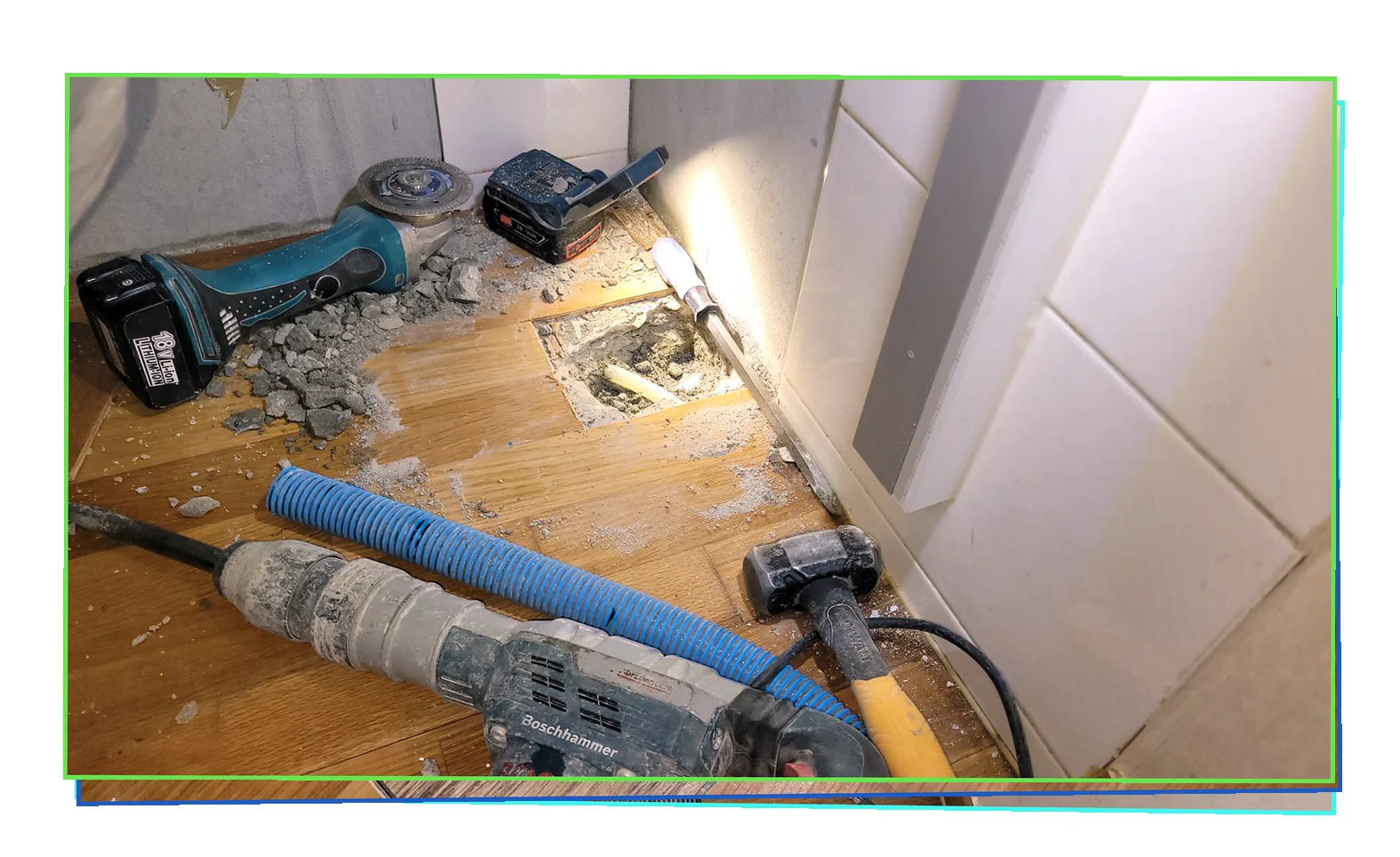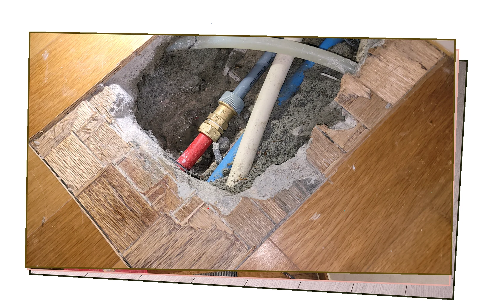 배관 내외부를 면밀히 살펴본 끝에 배관 용접부위의 파손 에서 지속적인 물 유출이 확인되었습니다.
