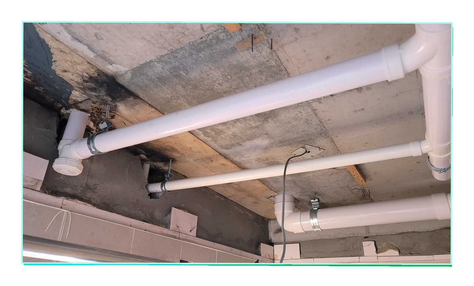 구석구석 조사한 결과 냉수관 이음부의 균열 에서 물이 새고 있었습니다.